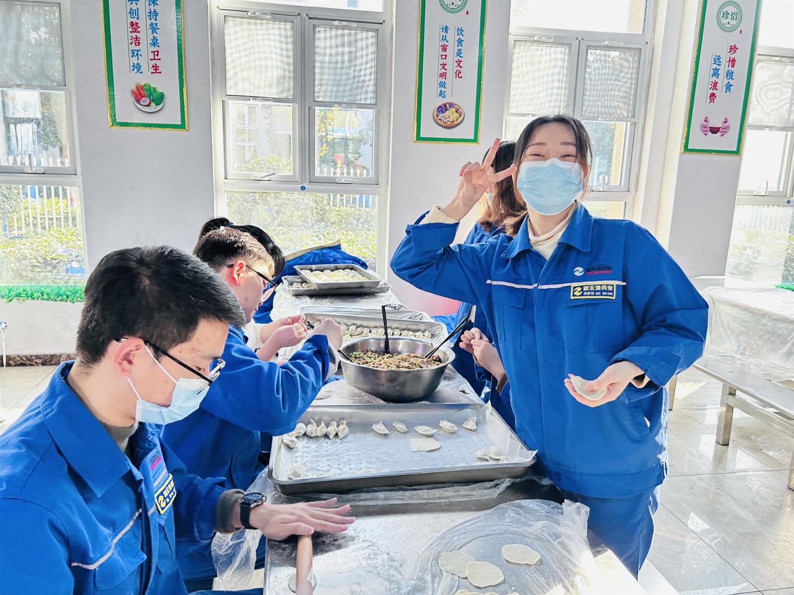 冬至不端饺子碗,冻掉耳朵没人管。12月21日冬至上午,公司在餐厅组织“浓浓饺子香,暖暖冬至情”包饺子活动,让来自天南地北的新天地人在这个特殊的冬日感受到公司大家庭的温暖。活动中,员工们分成几组围在桌前,你擀皮,我捏馅、她装盘......动作熟练,配合默契,在欢声笑语中,“精神抖擞”的一盘盘饺子很快呈现在大家眼前.....